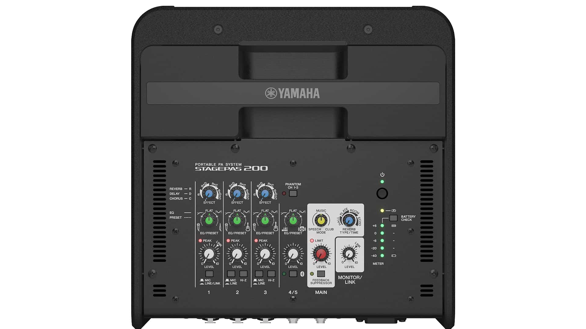 The Stagepas 200 is equipped with a digital mixer that can be controlled remotely for up to five channels, three mic preamps, and a comprehensive range of practical functions. The simple and intuitive operation of the Stagepas 200 makes dialing in your ideal sound a painless and even enjoyable process.