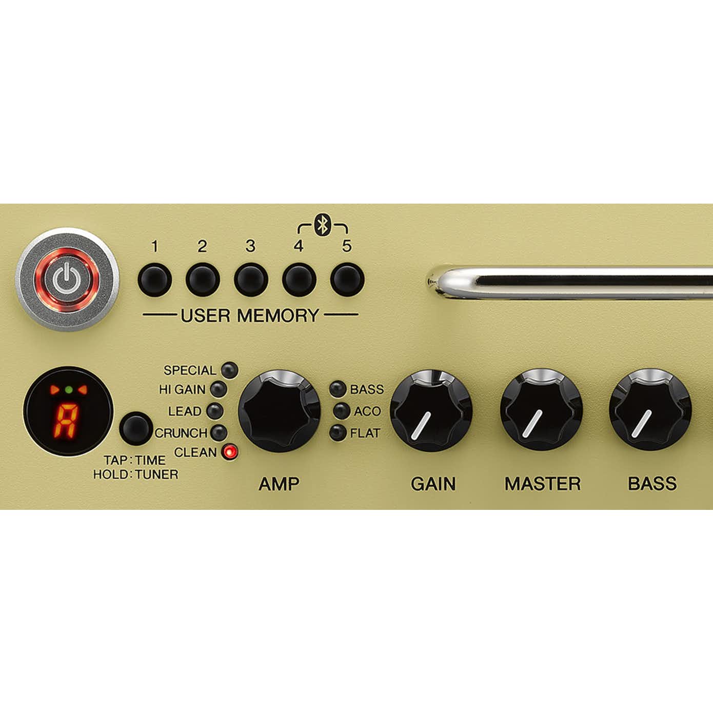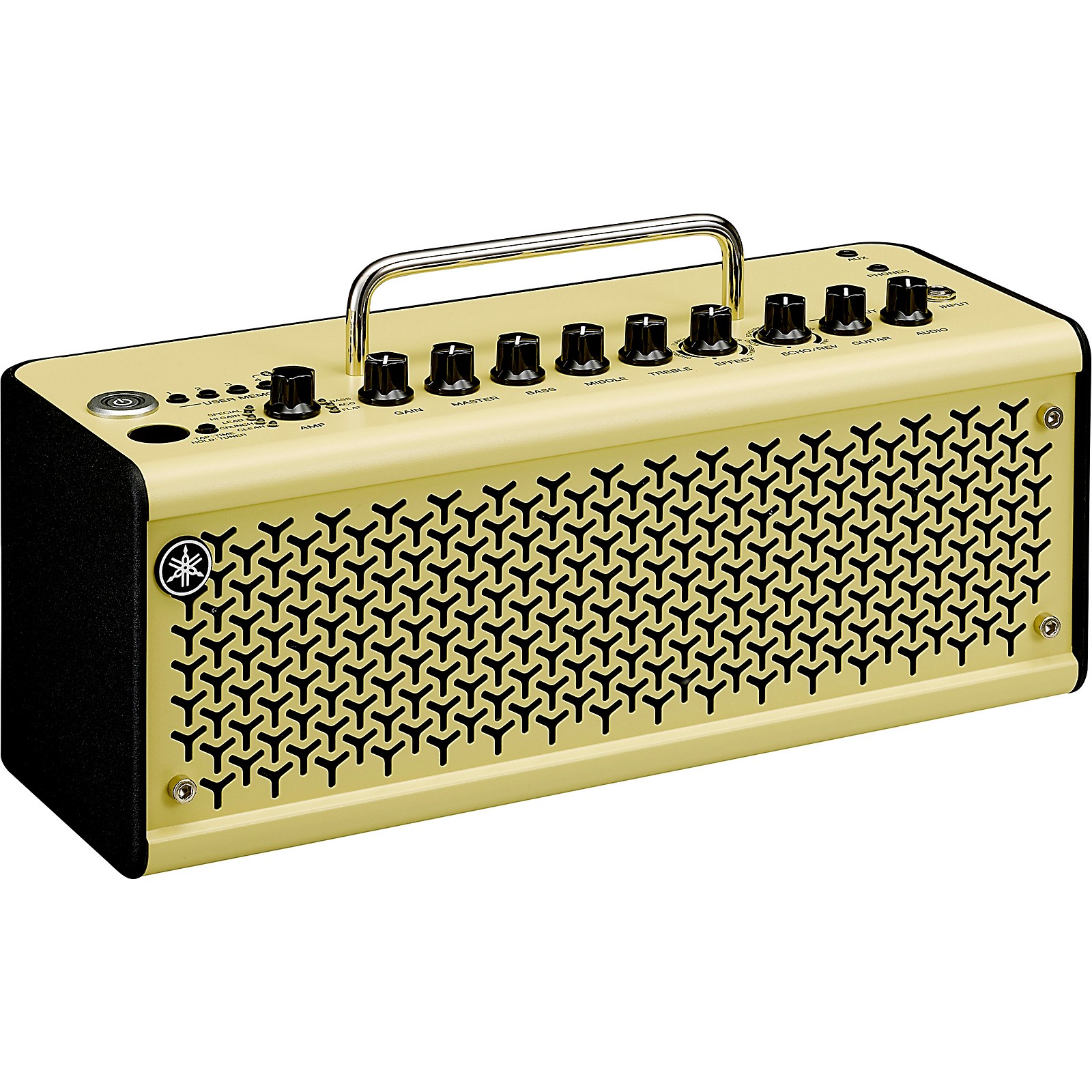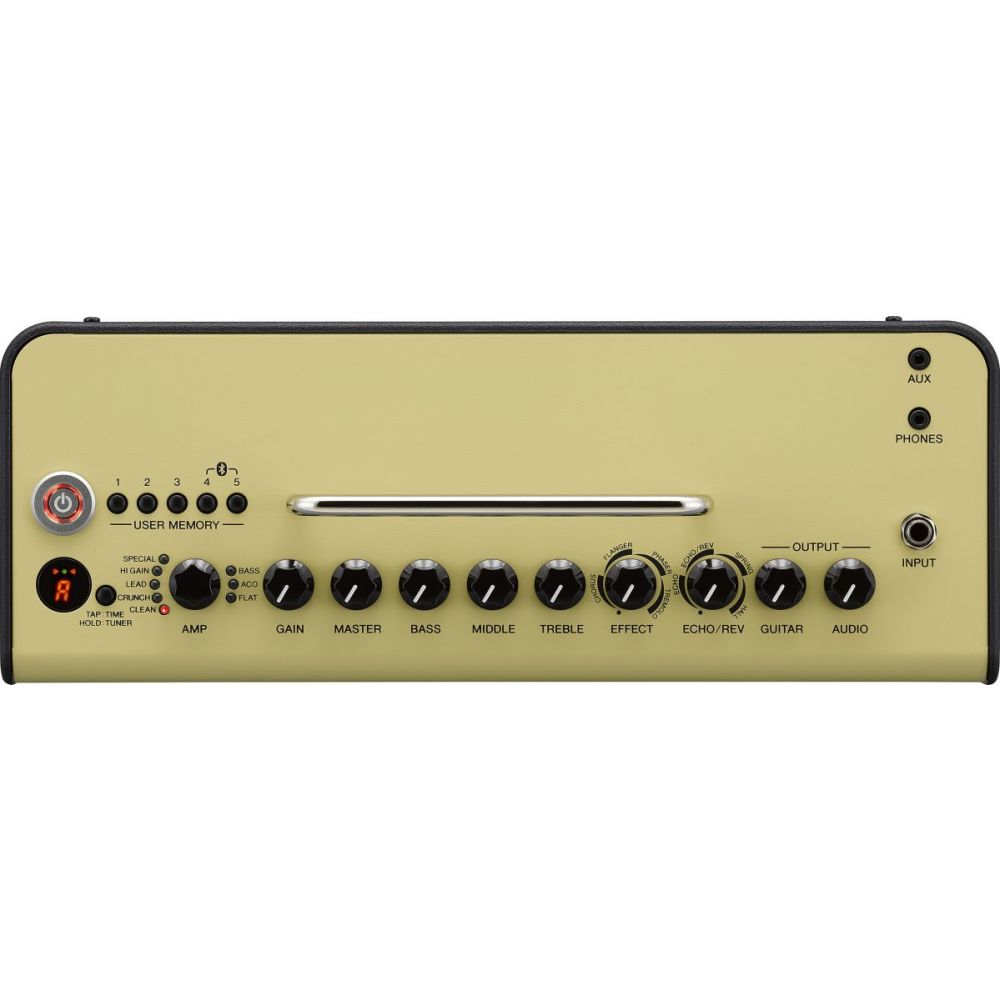 Kontorole: amp mode, gain, master, bass, middle, treble, effect, echo/rev, guitar output, audio output