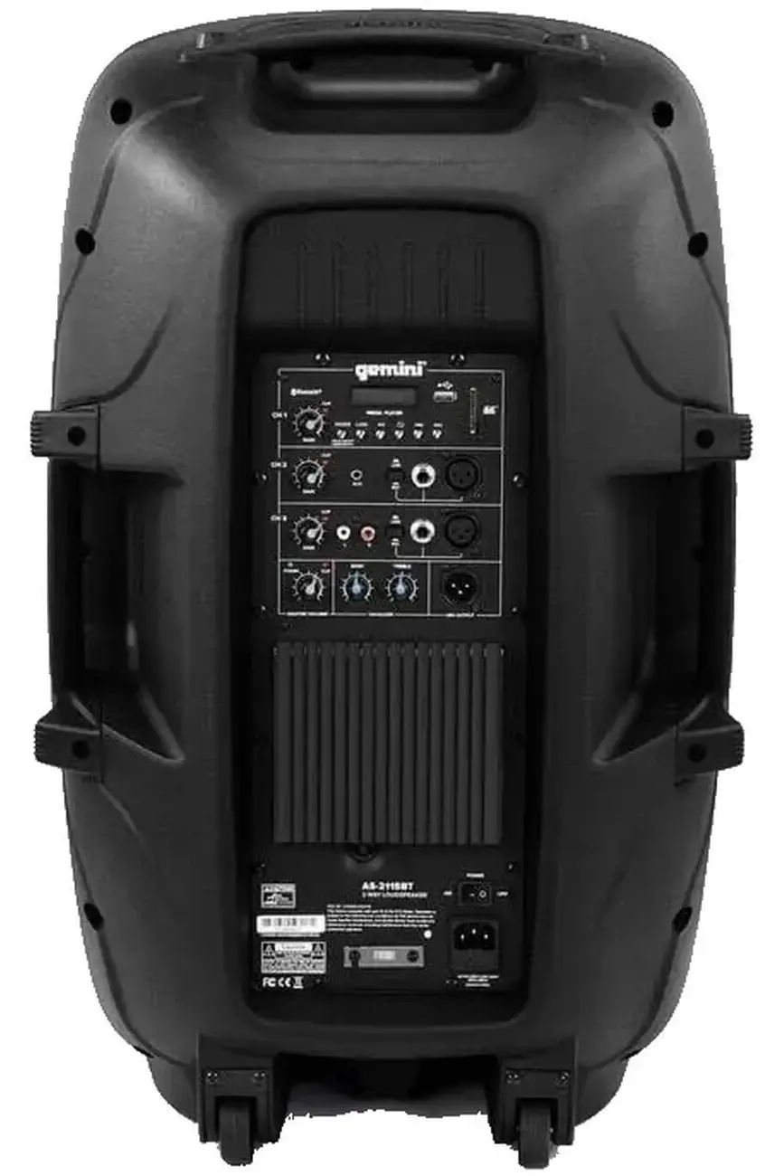 Ta lahek, izjemno učinkovit aktivni Bluetooth® zvočnik je zasnovan za optimalno zmogljivost, ne glede na to, kam ga vzamete. Gemini AS-2112BT je dvosistemski širokopasovni PA zvočnik z močnim, prostor napolnjujočim zvokom v kompaktni in trpežni ohišju. Njegov 12-palčni nizkofrekvenčni gonilnik z 2-palčno glasovno tuljavo in visokofrekvenčni kompresijski gonilnik iz čistega titana velikosti 1 palca zagotavljata popolno kombinacijo globokih nizkih in kristalno čistih visokih frekvenc. S toliko moči v tako kompaktnem paketu je idealen za vsako priložnost, po ceni, na katero je Gemini ponosno, da je neprekosljiva. Vgrajen medijski predvajalnik omogoča pretakanje preko Bluetooth® ter predvajanje MP3/WAV datotek preko USB-ja in SD kartice, prav tako pa ima tudi FM radio*.