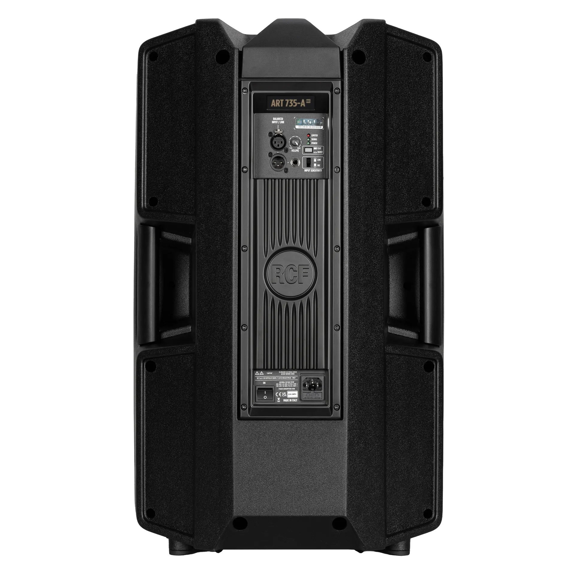- 15'' nizkotonec RCF visoke moči s 2,5'' tuljavo in 1,4'' visokotonec RCF Neo s 3'' tuljavo