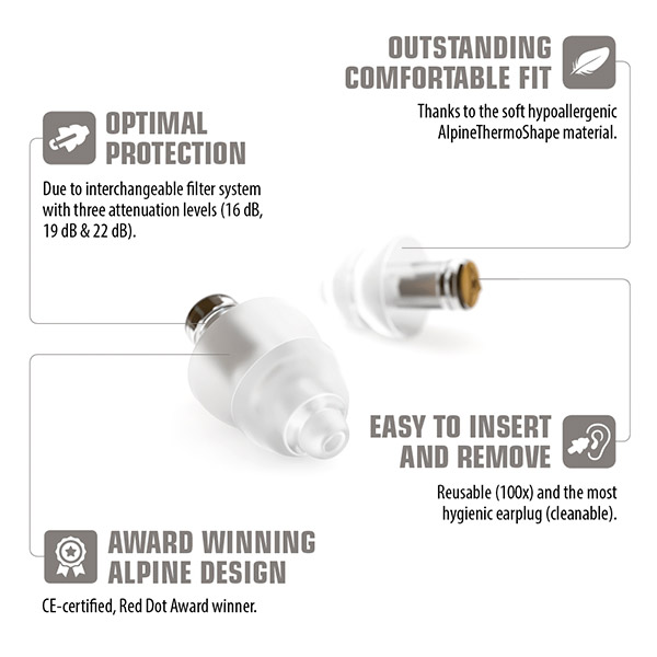 Preprečuje poškodbe sluha in zvonenje v ušesih kot rezultat izspostavljanju glasbni glasbi