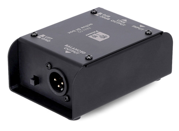 Kvaliteten in robusten aktivni DI box.Can be operated with 9 V batteries or 48 V phantom power. High-impedance input; higher output level than with a passive DI box. Active circuitry allows for high input impedance ( 1 meg. ohm) and higher input sensitivity (typical difference between in and out -4 dB). Maximum output impedance with phantom power operation +10 dB. Output: transformer balanced. The special "floating ground" circuitry enables ground lift even during phantom power operation. Metal case 110 x 73 x 42 mm.