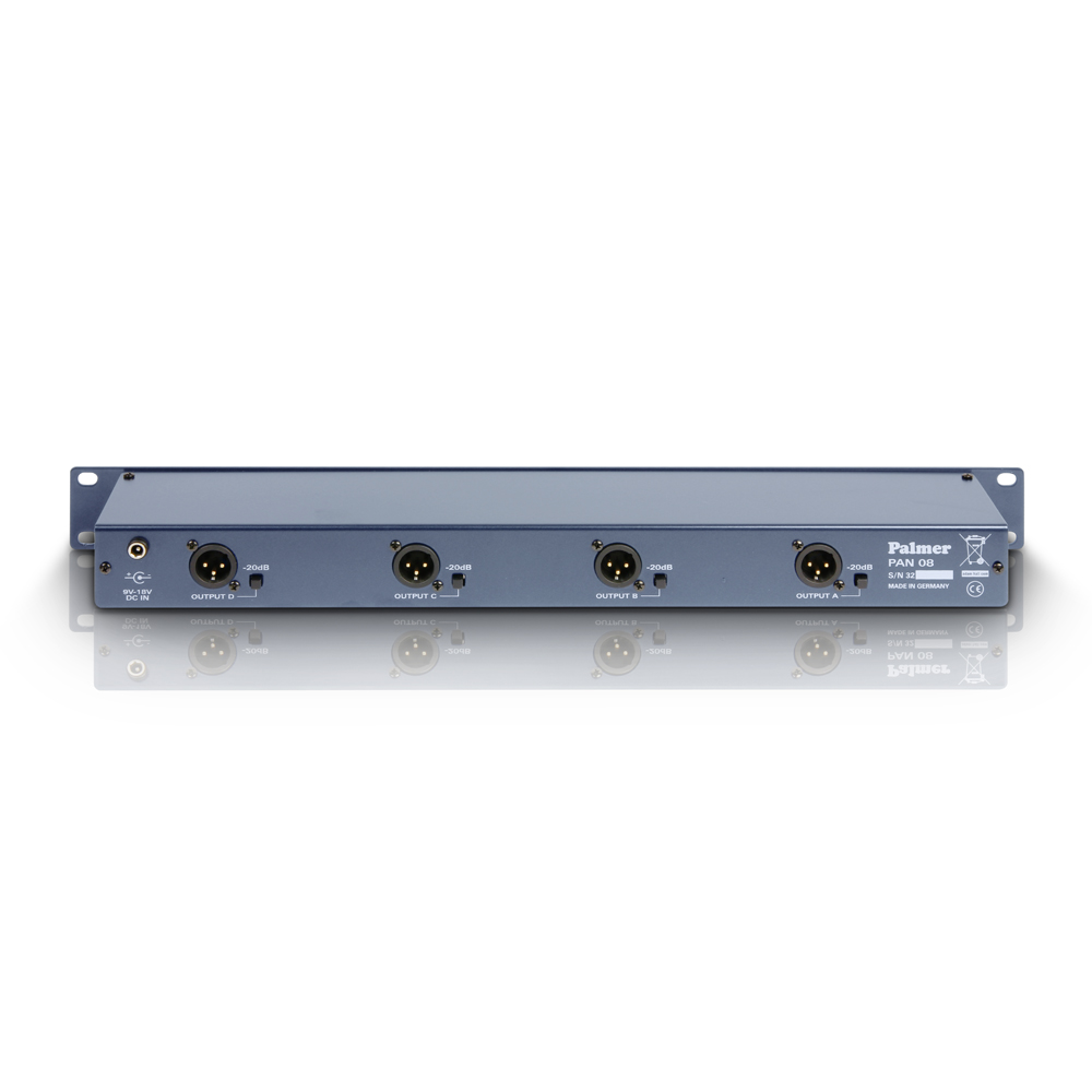 The PAN08 is a multifunctional device. Each of the four channels can be used independently as an active DI box, line isolation boxor booster. The combination socket input accepts unbalanced and balanced signals. The output has dual transformer balanced XLR jacks (front and rear).