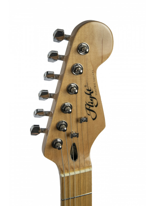 Cenovno dostopma "Strat" električna kitara, primerna za vse stile glasbe! Flight EST11 V2, izboljšana nova verzija popularnega modela "stratocaster" električne kitare. Klasična oblika trupa in konfiguracije magnetov. Električna kitara primerna za igranje raznih stilov glasbe kot so pop, rock, blues in metal! Flight EST11 V2 je električna kitara primern tudi za začetnike in vse tiste, ki se podajajo v svet električnih kitar. Klasična "stratocaster" oblika, ki ponuja odličen občutek pri igranju ter osvajanju inštrumenta. Konfiguracija 3 single coil magnetov, ki osvoji tudi bolj zahtevne kitariste. Klasičen tremolo sistem.