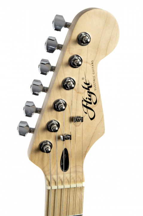Cenovno dostopma "Strat" električna kitara, primerna za vse stile glasbe! Flight EST11 V2, izboljšana nova verzija popularnega modela "stratocaster" električne kitare. Klasična oblika trupa in konfiguracije magnetov. Električna kitara primerna za igranje raznih stilov glasbe kot so pop, rock, blues in metal! Flight EST11 V2 je električna kitara primerna tudi za začetnike in vse tiste, ki se podajajo v svet električnih kitar. Klasična "stratocaster" oblika, ki ponuja odličen občutek pri igranju ter osvajanju inštrumenta. Konfiguracija 3 single coil magnetov, ki osvoji tudi bolj zahtevne kitariste. Klasičen tremolo sistem.