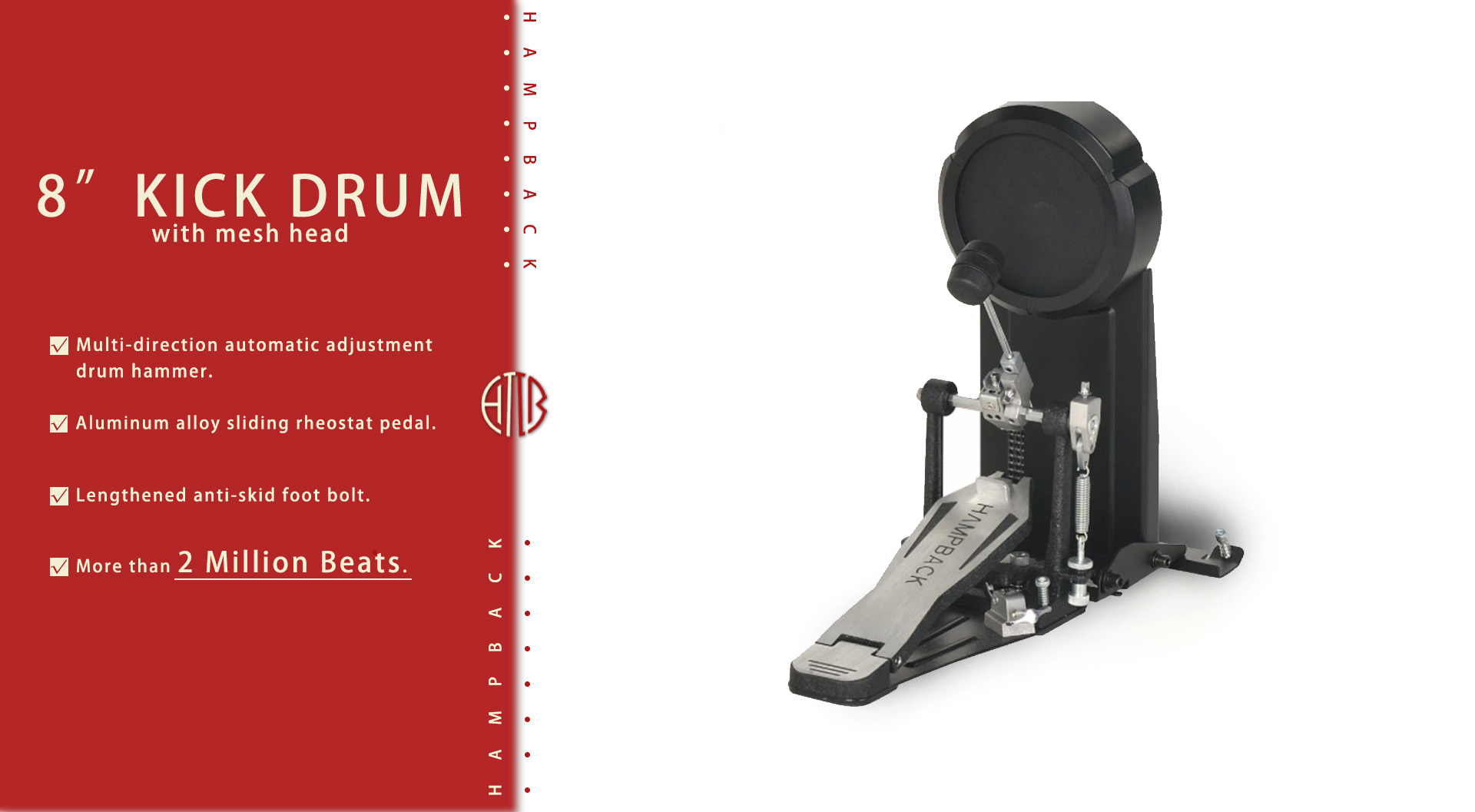 HAMPBACK MK-5L PRO kvalitetnejši elektronski bobni z mesh opnami za bolj avtentičen občutek pri igranjuSpecifikacije: