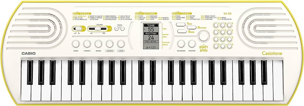 Casio SA-80 je otroška klaviatura s 100 zvoki, 50 spremljavami in 10 pesmimi .