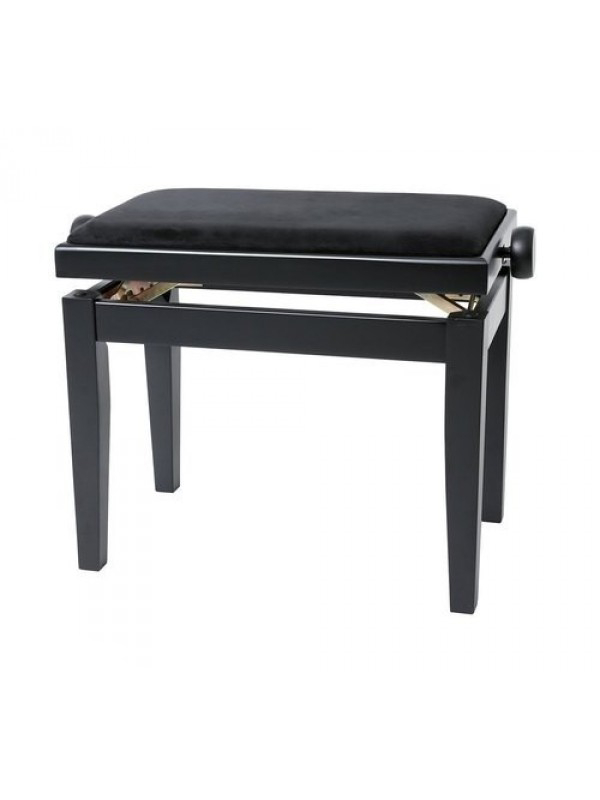 Klavirska, po višini nastavljiva klop iz masivnega lesa v mat črni barvi primerna za vse vrste klavirjev in klaviatur.