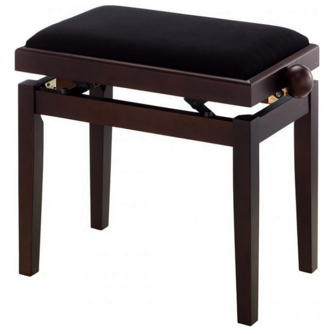 Klavirska, po višini nastavljiva klop iz masivnega lesa v mat palisander barvi primerna za vse vrste klavirjev in klaviatur.