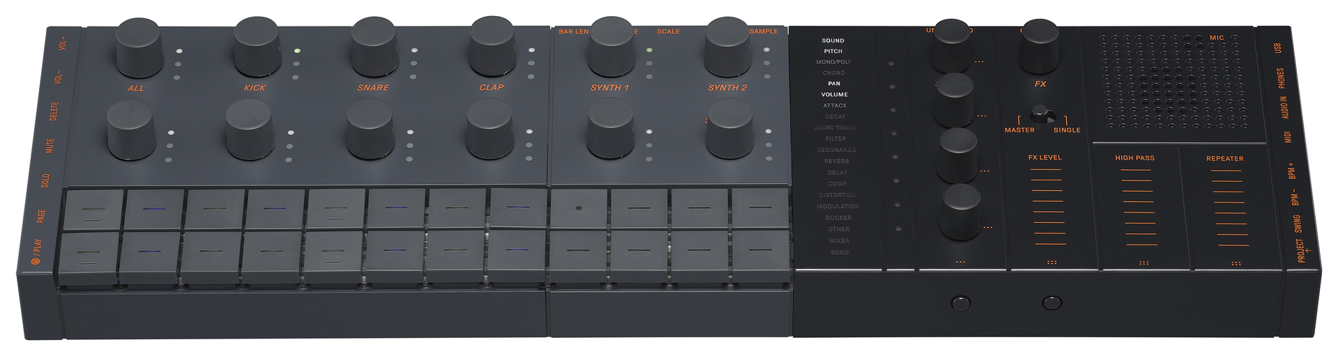 Drum machine, sintetizator, sampler, sekvencer ter USB MIDI in avdio vmesnik 24-bitov / 44,1 kHz - Vse v enem!