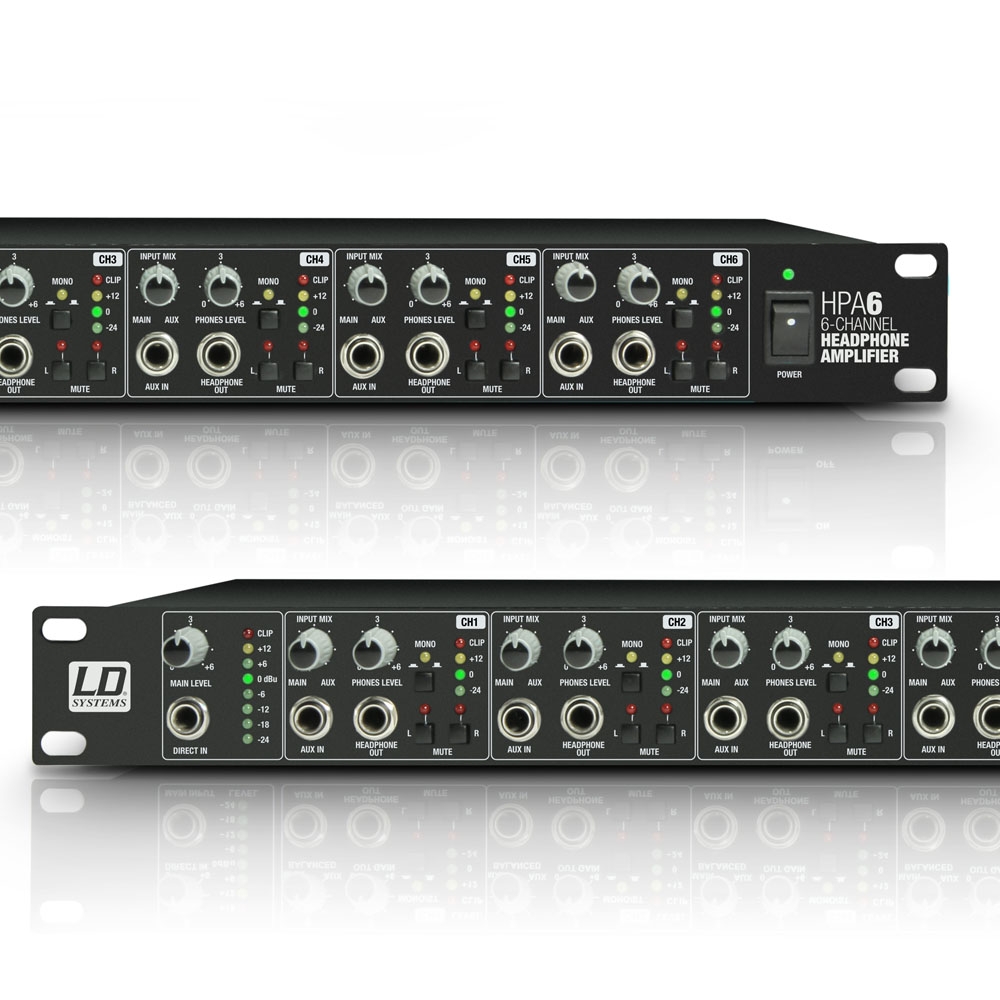 The LD Systems HPA 6 is a highly flexible 1U 19“ rack format headphone amplifier with 6 fully independent channels and comprehensive features for a wide range of professional audio monitoring applications.