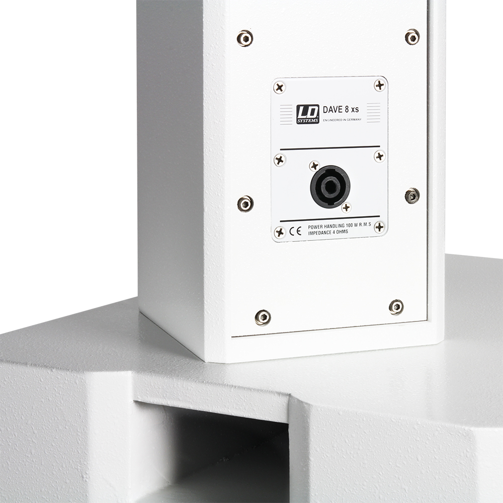 LD Systems DAVE 8 XSW aktivno prenosno ozvočenje 8" band pass subwoofer (150 W RMS) in dva 4" satelita (2 x 100 W).