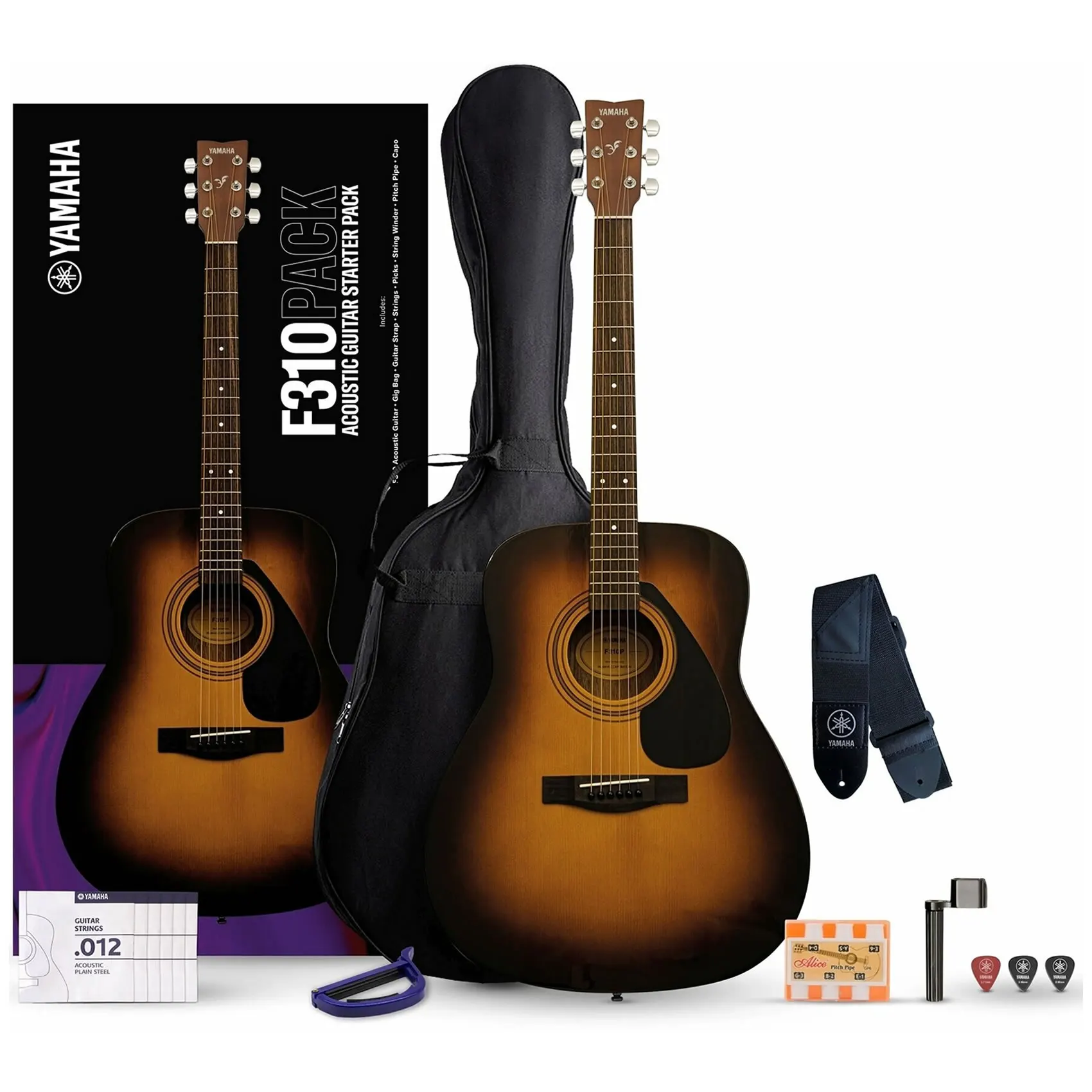 YAMAHA F310P2 kitarski set z akustično kitaro in vsem, kar potrebujete za dober začetek.