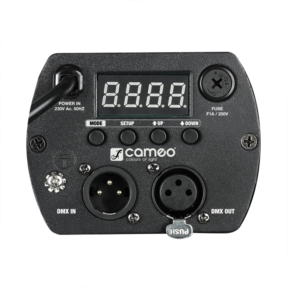 Extremely powerful studio mini PAR with seven 8-watt QUAD COLOUR LEDs for optimal colour mixing and perfect white light. This studio LED PAR has a beam angle of 25 degrees and is controlled via five DMX modes. An LED display on the back and four buttons ensure simple and practical operation. Alternatively, the studio mini PAR can also be operated in standalone mode with a built-in microphone and sound control.