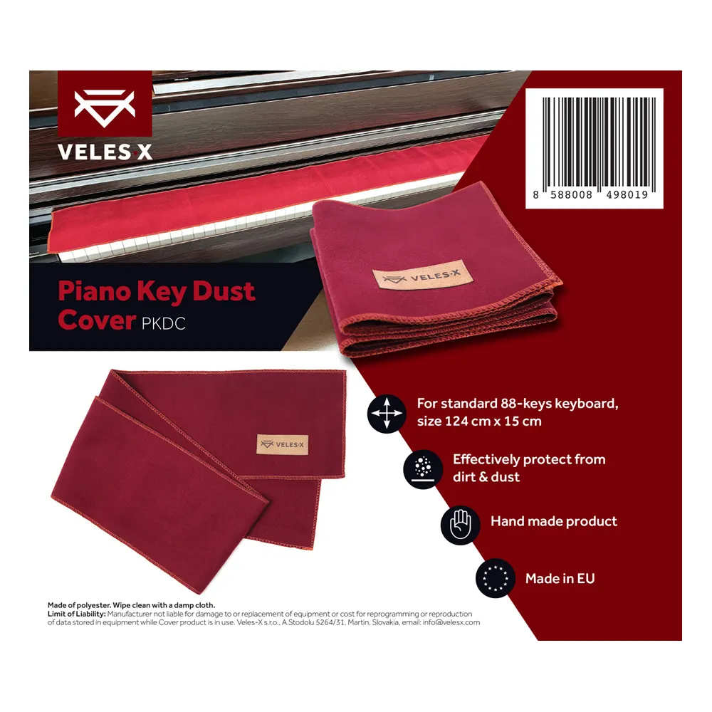 Elegantno, preprosto, privlačno pokrivalo se prilega dolžini standardne tipkovnice z 88 tipkami. Učinkovito ščiti tipkovnico pred prahom in umazanijo. Ročno šivani robovi protiprašnega pokrivala za klavirske tipke dodajo eleganco samemu instrumentu.
