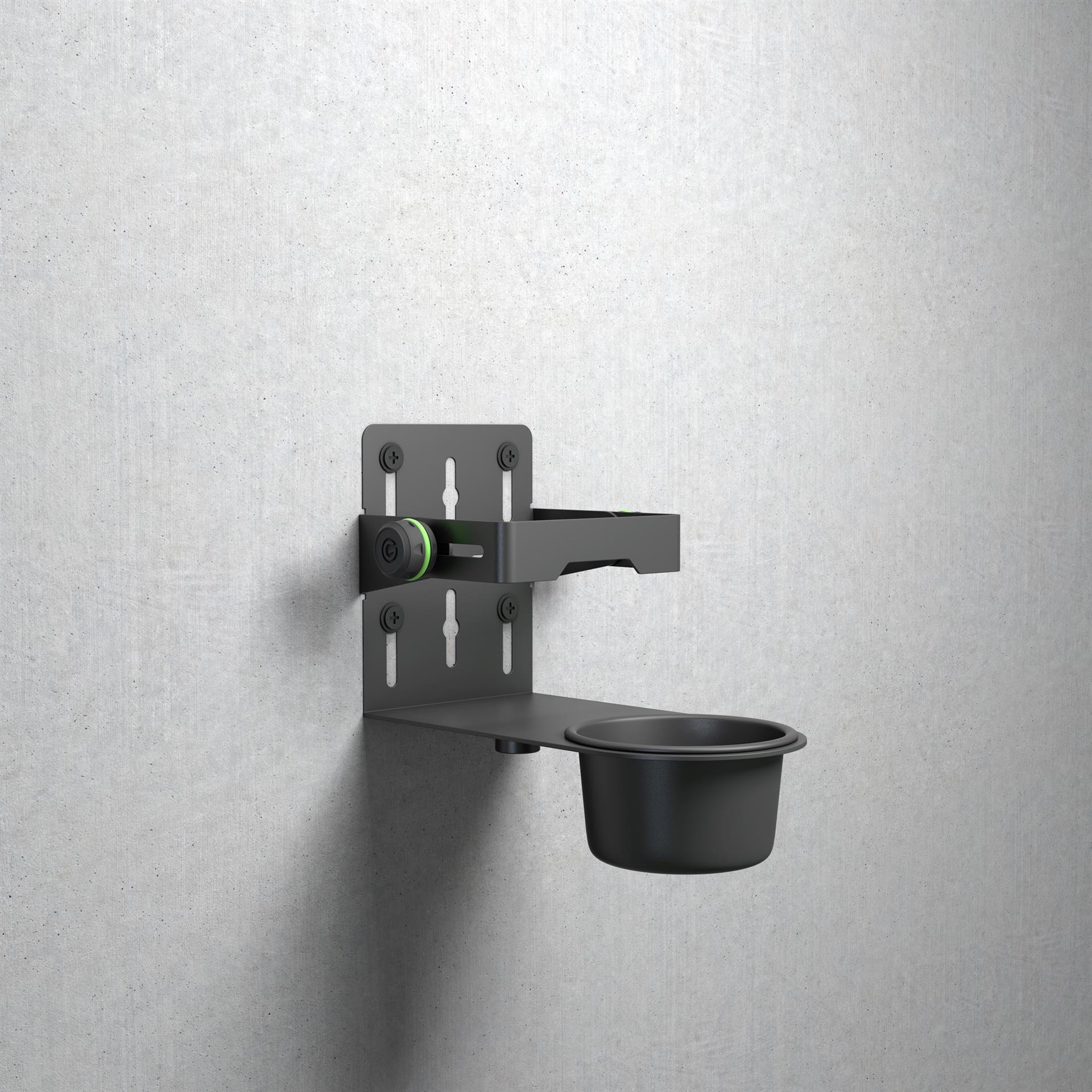 Montažna razkuževalna postaja priznanega proizvajalca odrskih stojal Gravity, nosilec za razkužilo z zbiralnikom odvečnega razkužila.