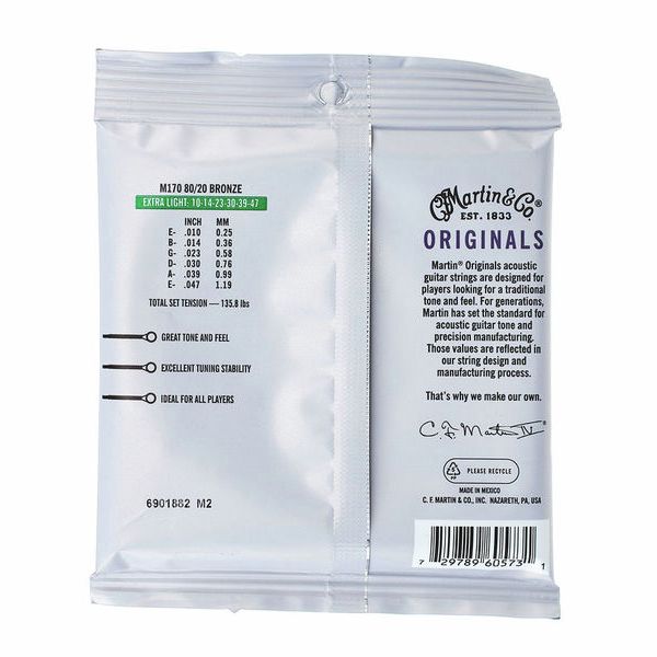 Strune Martin 80/20 Originals so popolnoma primerne za glasbenike, ki imajo radi bogate base in jasne, čiste visoke tone. Martin Originals so idealne za vsakodnevno uporabo in vsak slog igranja.