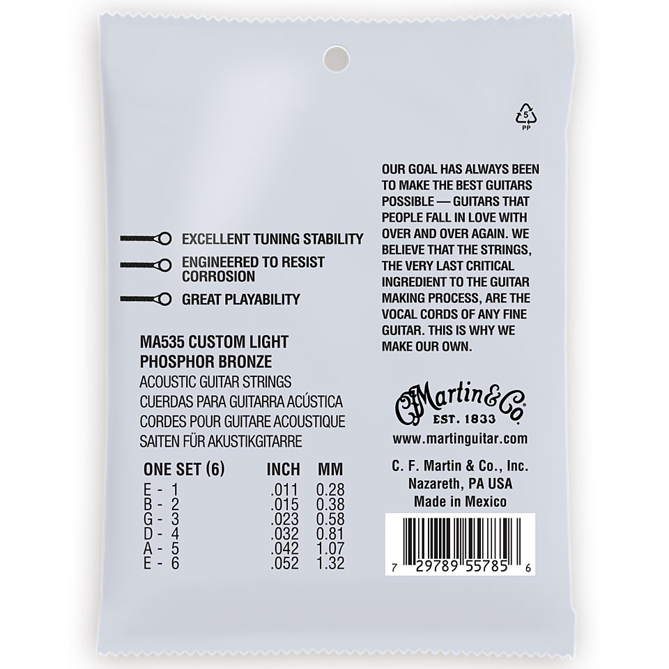 Martin Authentic Acoustic strune zagotavljajo odlično stabilnost pri uglaševanju in igranje s svetlimi in bogatimi toni.