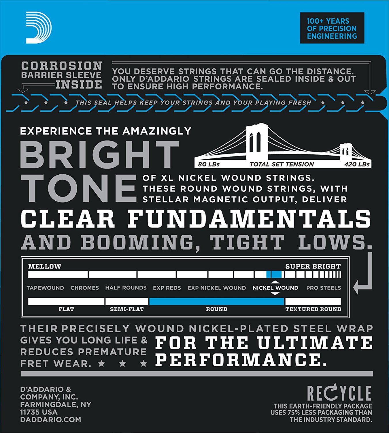 XL Nickel Wound strune za električno bas kitaro zaradi svoje kvalitete in zanesljivosti že vrsto veljajo za standard v glasbeni industriji. Uporabljajo jih glasbeniki širom sveta v najrazličnejših glasbenih žanrih.