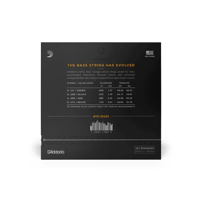 D’Addario NYXL zvenijo bogateje kot katerikoli komplet, ki ste ga igrali prej. Vrhunske neprevlečene strune ponujajo izjemno stabilnost uglaševanja. Z jeklenim jedrom NY Steel, tehnologijo Fusion Twist in nikljano jekleno navitno žico z izboljšanim razmerjem med jedrom in ovojem te strune zagotavljajo vsestranskost, udoben občutek ter močan, osredotočen ton. Ta komplet strun 45-105 ponuja odlično kombinacijo bolj izrazitih nizkih tonov in uravnoteženih, svetlih visokih tonov.