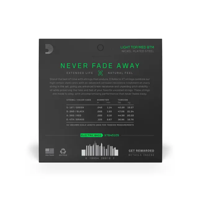 D’Addario XT 45-105 strune za bas združujejo naraven občutek neprevlečenih strun z napredno zaščitno prevleko, ki zagotavlja daljšo življenjsko dobo in ohranja svež ton.