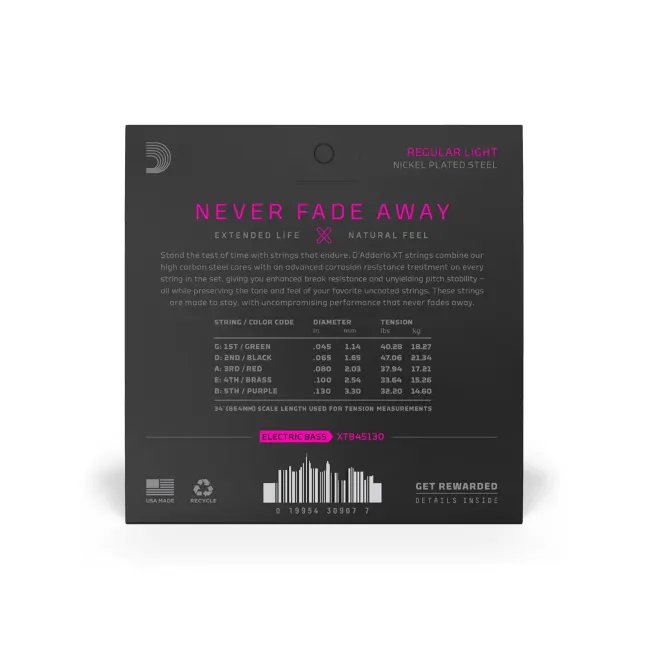 D’Addario XT 45-105 strune za bas združujejo naraven občutek neprevlečenih strun z napredno zaščitno prevleko, ki zagotavlja daljšo življenjsko dobo in ohranja svež ton.