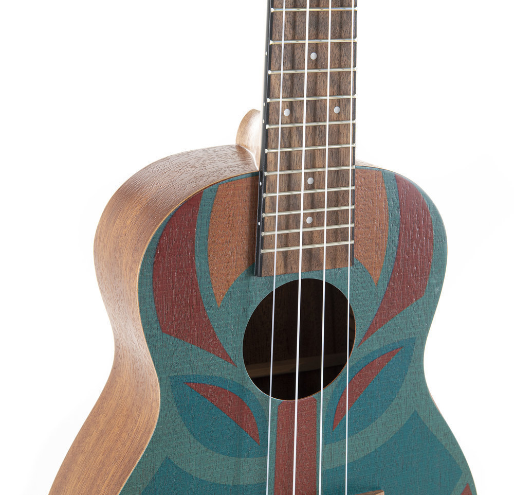 Kvaliteten in zelo atraktiven koncertni ukulele iz resonančnega Sapeli lesa, s torbo.