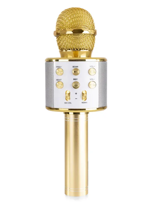 Zabava, kjer koli želite! VONYX KM01 BT/MP3 Gold je brezžični karaoke mikrofon, ki združuje kakovosten zvok, moderno obliko in popolno svobodo gibanja. Idealen je za domače zabave, rojstnodnevne dogodke, druženja ali otroške karaoke večere. Vgrajen Bluetooth modul omogoča enostavno povezavo s pametnim telefonom ali tablico, medtem ko MP3 predvajalnik in LED osvetlitev poskrbita za pravo scensko vzdušje. Zlata barva daje mikrofonu eleganten, luksuzen videz, ki pritegne poglede.