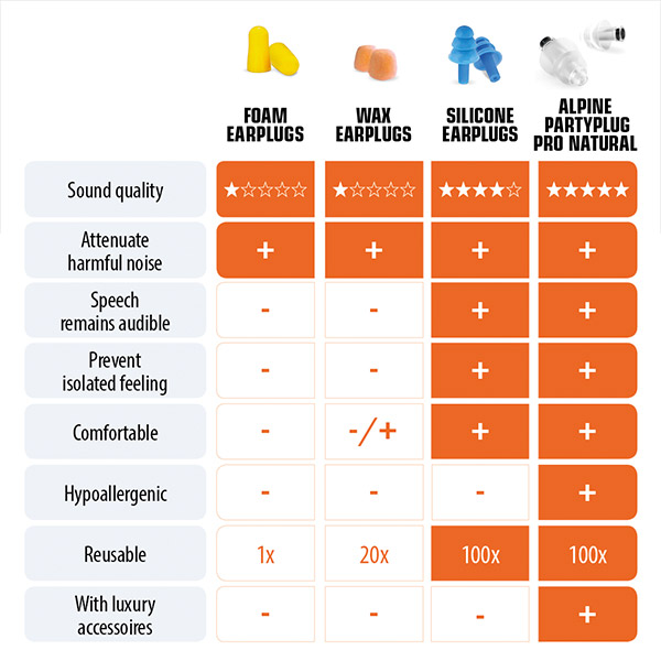 Profesionalna zaščita za sluh, zagotavlja naraven zvok, enakomerno zniža glasbo na vseh frekvenčnih območjih.