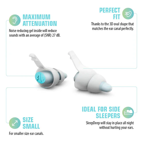 Odkrijte udobje SleepDeep, ušesnih čepkov za spanje, zasnovanih posebej za izboljšanje vašega nočnega spanca. S svojo edinstveno ovalno 3D obliko se popolnoma prilegajo vašemu ušesnemu kanalu. Ta pametna zasnova zagotavlja, da ušesni čepki ostanejo trdno na svojem mestu, ne glede na vaš najljubši spalni položaj – zaradi svoje udobnosti in majhnosti pa so idealni za bočne spalce! Privoščite si počitek, ki si ga zaslužite. Odlična zaščita pred smrčanjem! Preizkusite SleepDeep še danes in občutite razliko v kakovosti svojega spanca.